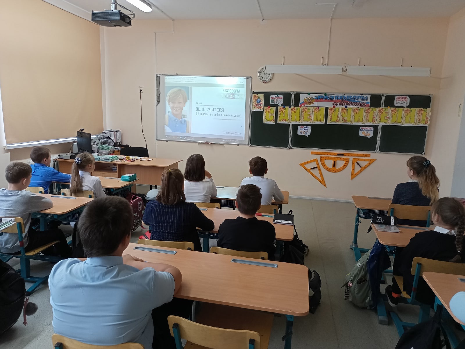 "Разговоры о важном" 3 октября был посвящен самому доброму и светлому празднику - Дню учителя. Пробуждение интереса к профессии учителя, воспитание уважения к учителю, наставнику, формирование представления о роли учителя в становлении личности каждого человека стало главной целью урока. Занятие прошло в форме беседы-обсуждения. С использованием рекомендованных методических материалов с сайта Всероссийского проекта: видеоролика, интерактивных заданий, включающих в себя анализ информации, групповую работу с текстом.