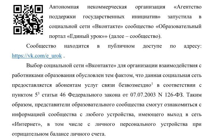 О запуске сообщества «Образовательный портал «Единый урок»» в социальной сети «Вконтакте»