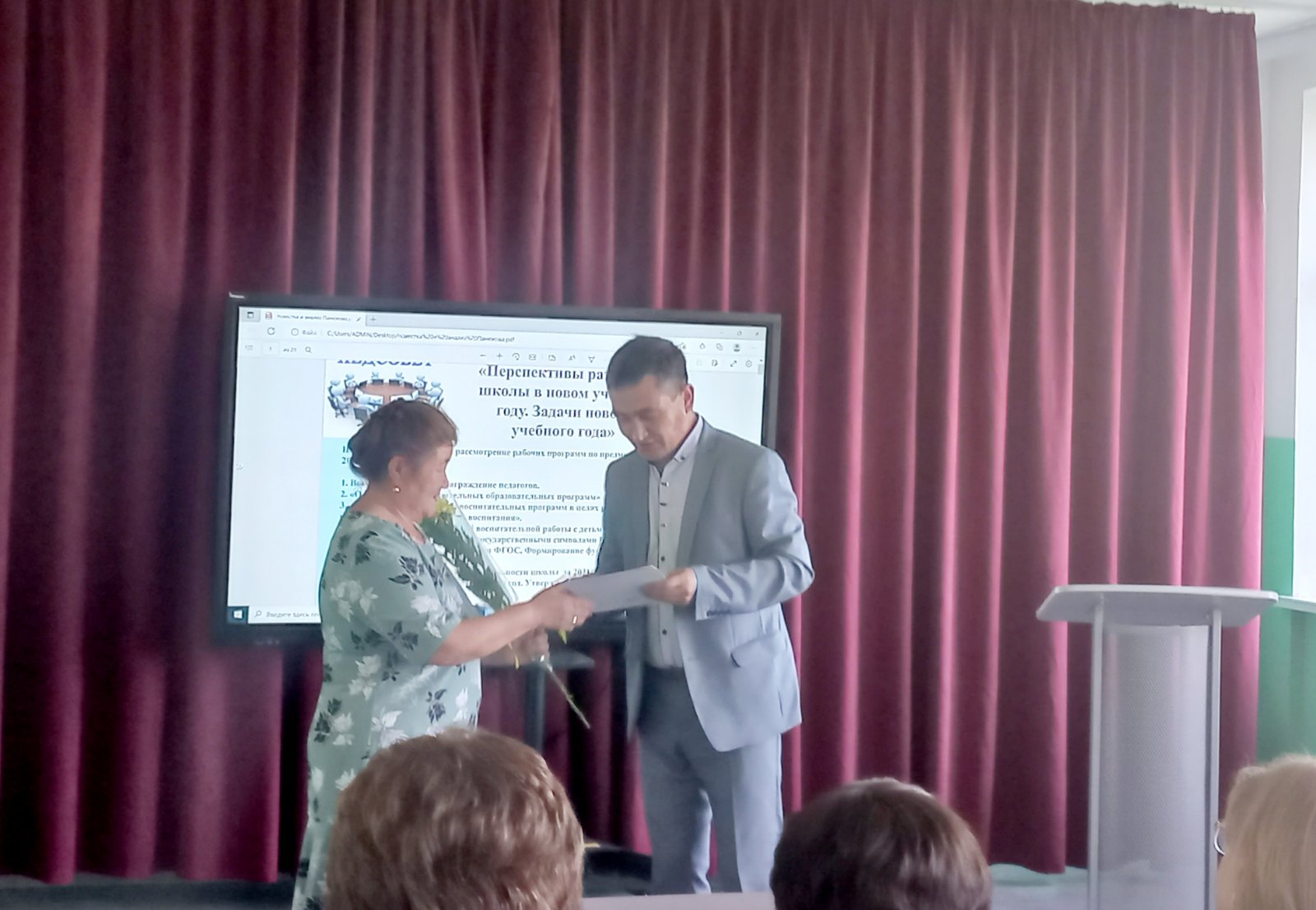 Открыл педсовет директор школы Иван Жоламанович Жоламанов, который озвучил цели и задачи педсовета, отметил грамотами педагогических работников ща многолетний добросовестный труд.