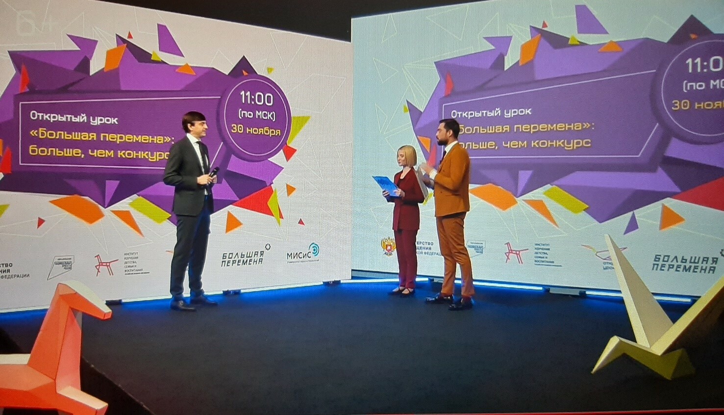 30 ноября прошел Всероссийский открытый урок «Большая перемена»: больше, чем конкурс». Он был посвящен итогам первого сезона конкурса для школьников «Большая перемена» – проекта президентской платформы «Россия – страна возможностей». Конкурс «Большая перемена» объединил более одного миллиона школьников, став пространством возможностей для старшеклассников всей страны. Об итогах первого сезона и будущем самого масштабного конкурса в истории современной России рассказали победители «Большой перемены» и педагоги-наставники. Трансляция урока была осуществлена на официальном сайте открытые уроки.рф, а также на официальной странице Министерства просвещения Российской Федерации в социальной сети «ВКонтакте». Всероссийские открытые уроки проводятся Институтом изучения детства, семьи и воспитания РАО совместно с Минпросвещения России в рамках федерального проекта «Успех каждого ребенка» нацпроекта «Образование»