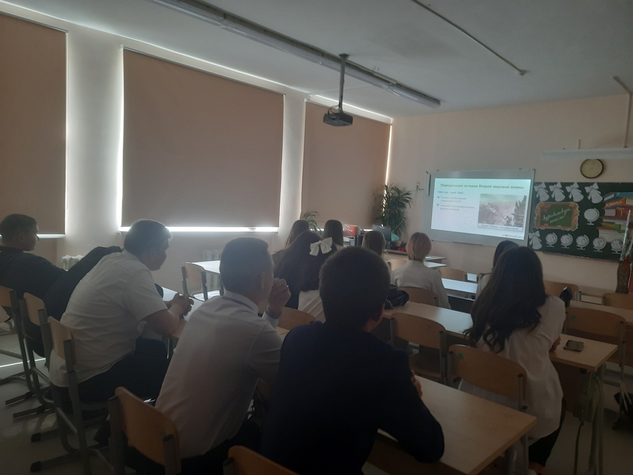 В преддверии очередной даты окончания Второй мировой войны учащиеся 10 класса получили при просмотре учебного фильма новые знания о войне, проверив при прохождении онлайн-теста.