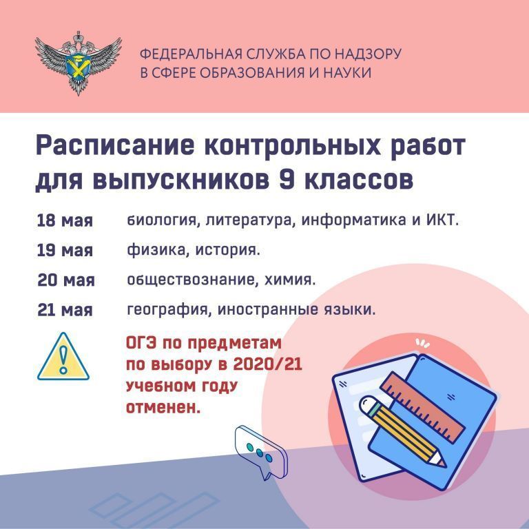 Обучающиеся 9-х классов напишут контрольную по одному предмету по своему выбору, выполнение работ по нескольким предметам не предусматривается.