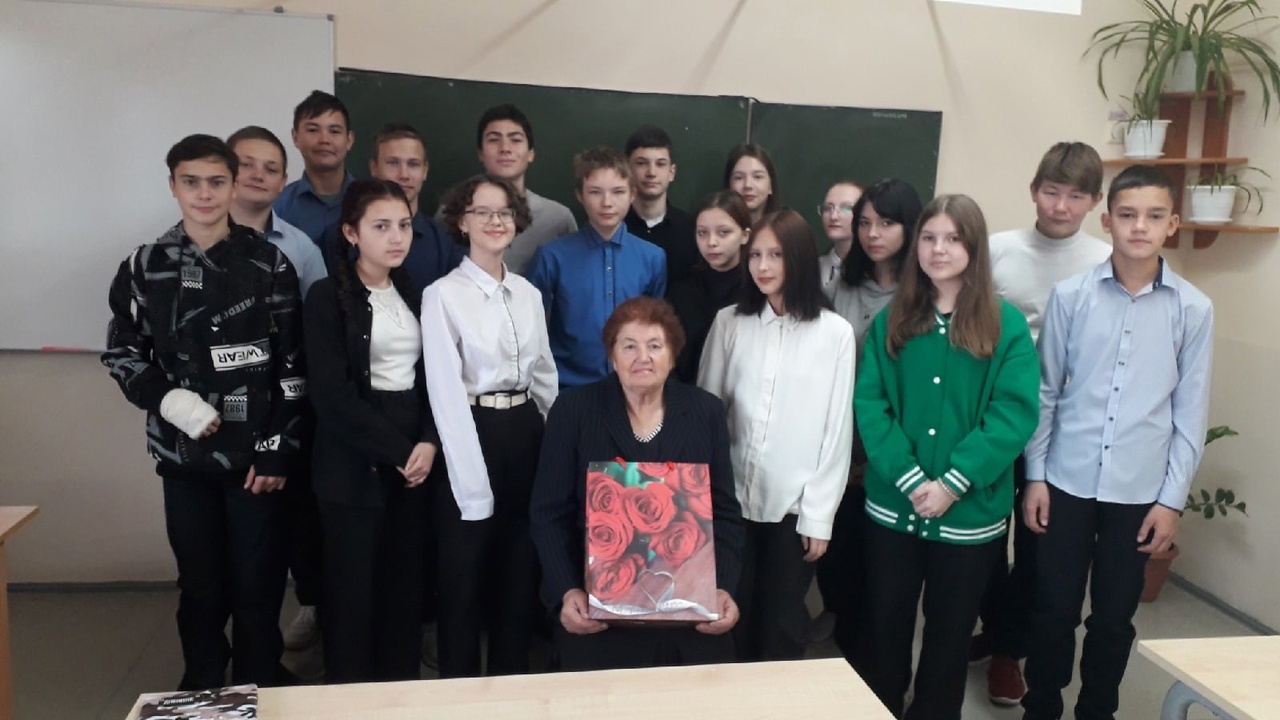 В честь юбилея школы в 8 классе была проведена встреча с ветераном педагогического труда Благининой Эрной Александровной.