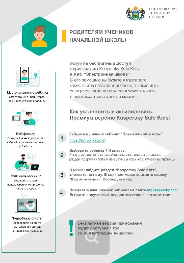 Уважаемые родители, есть бесплатная возможность использования приложения родительского контроля «Kaspersky Safe Kids» для родителей (законных представителей) обучающихся 1-4 классов.