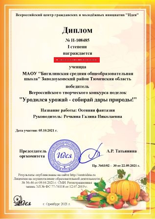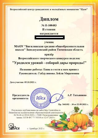 Осенью по традиции в нашей школе проходит конкурс поделок из природного материала. Такой же конкурс проводится и на всероссийском уровне. Три ученика начальной школы (2 первоклассника и 1 третьеклассник) приняли в нем участие.