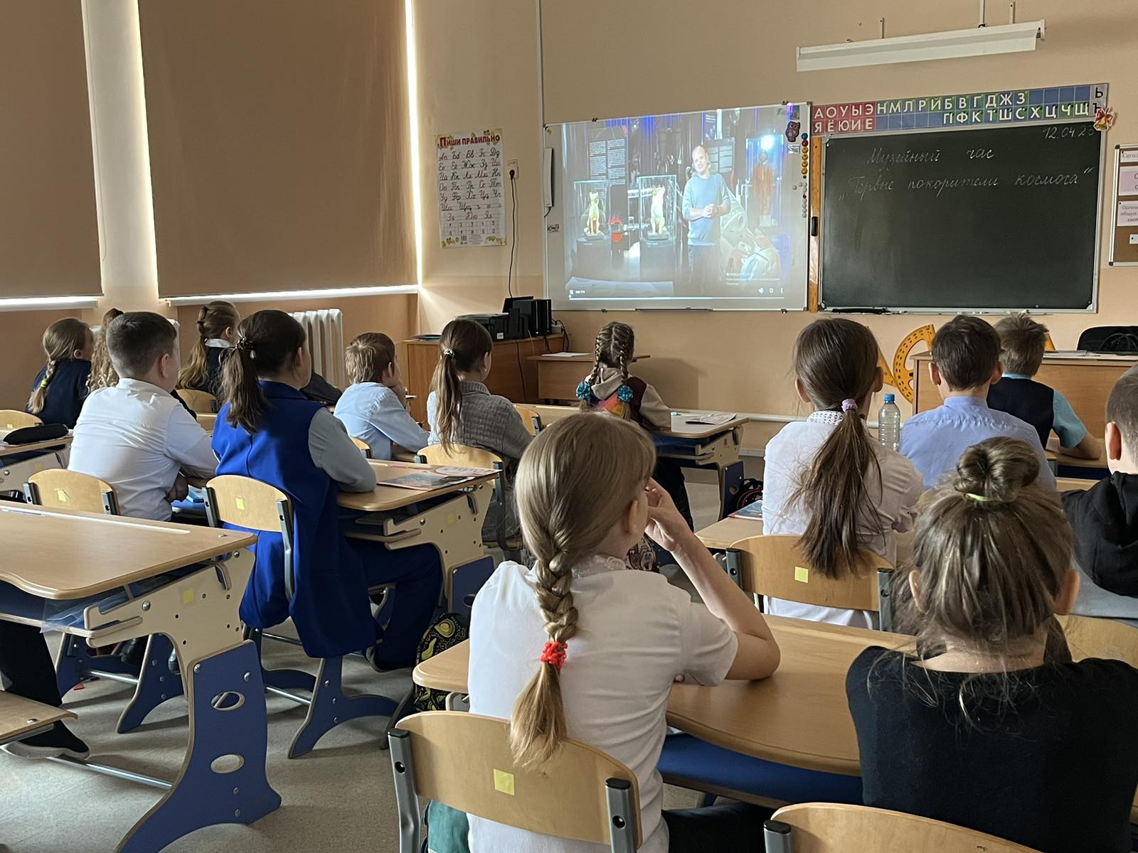 12 апреля – день космонавтики. Сегодня у третьеклассников прошел музейный урок «Первые в космосе». Познавательное мероприятие началось с просмотра видеоролика «Просто о космосе. Первые полеты в космос». Затем, в ходе просмотра презентации «Первые покорители космоса» ребята узнали много интересных фактов. Например, почему скафандр СК-1, в котором Юрий Гагарин полетел впервые в космос оранжевого цвета, почему в космосе не будут работать песочные часы, стакан для воды и весы, у кого из космонавтов был позывной «Чайка»… и многое другое! В заключении ребята поучаствовали в интерактивной игре-викторине по экспозиции Мемориального музея космонавтики. Все третьеклассники получили сертификаты об участии во Всероссийском уроке «Первые покорители космоса». Школьники с гордостью знакомились с героическим прошлым родной страны, узнали о новых для них страницах России!