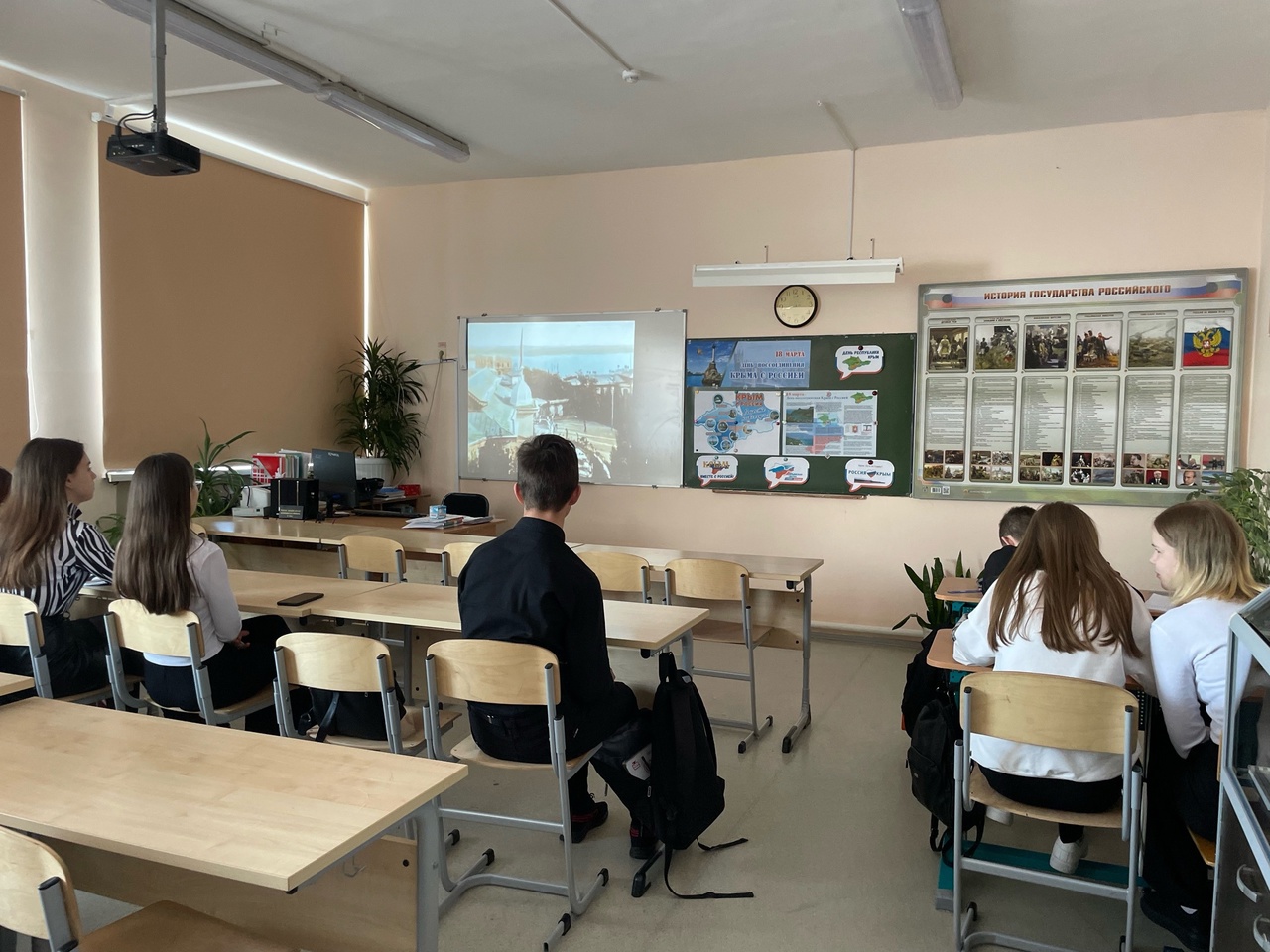 Ученики 10 класса приняли участие в новом уроке из цикла «Разговоры о важном». Тема урока - «Крым и Севастополь: 10 лет в родной гавани». Ребята пополнили свои знания о Крыме, выполнили интерактивные задания на знание истории Крыма, поиграли в кубик Блума с размещенными на нем вопросами о Крыме.
