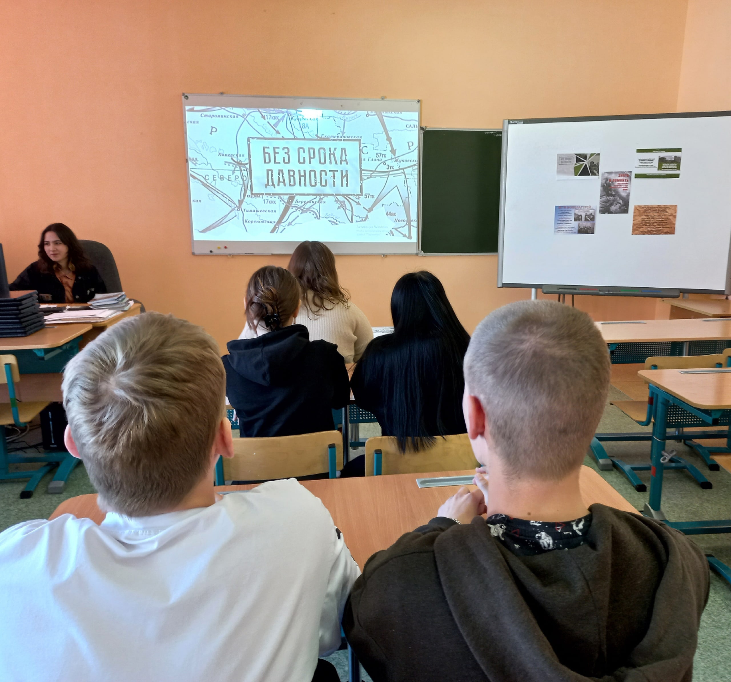 Ребята познакомились с понятием «геноцид», узнали некоторые факты о трагедии мирного населения СССР в период Великой Отечественной войны. Дети посмотрели видеофильм, рассказавший о событиях войны — они узнали о фактах массового уничтожения мирного населения фашистами, о лагерях смерти, о том, как ни в чем неповинные люди стали жертвами преступлений нацистов. С помощью слайдов «Без срока давности» с ребятами была проведена ситуационная игра-выбор на основе конкретно приведенных фактов военной истории. Ученики узнали о мемориалах и памятниках, установленных в память о геноциде советского народа нацистами. Просмотр фильма «Без срока давности», прочтение стихотворения «Варварство» Мусы Джалиля не оставили равнодушным никого из присутствующих. Учащиеся пришли к выводу, что уроки прошлого нельзя забывать, чтобы не допустить повторения всенародного горя в настоящем. У таких действий против человечества и мира нет срока и места давности.