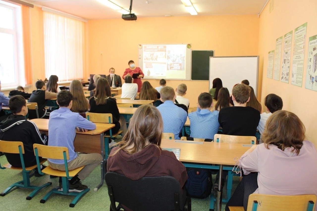 Также урок посетил Василий Гуляев, где рассказал ребятам про "Дорогу жизни".