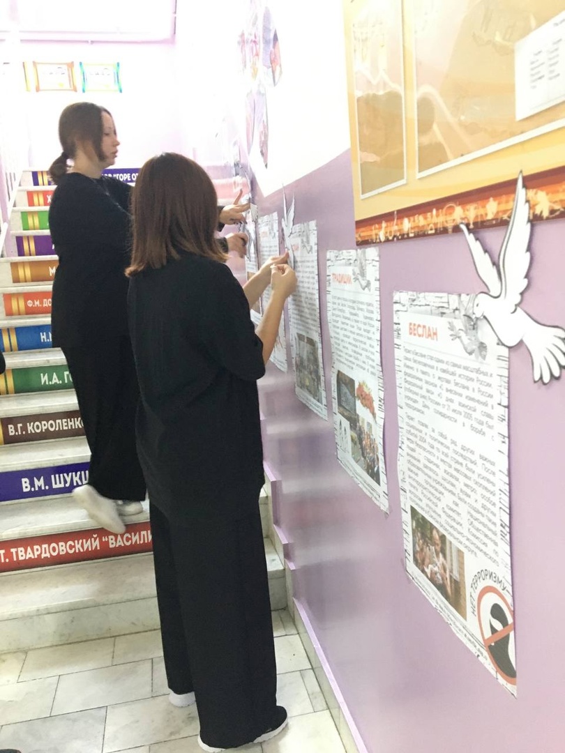 Сегодня в нашей школе было организовано оформление информационного стенда "МЫ ПОМНИМ БЕСЛАН".