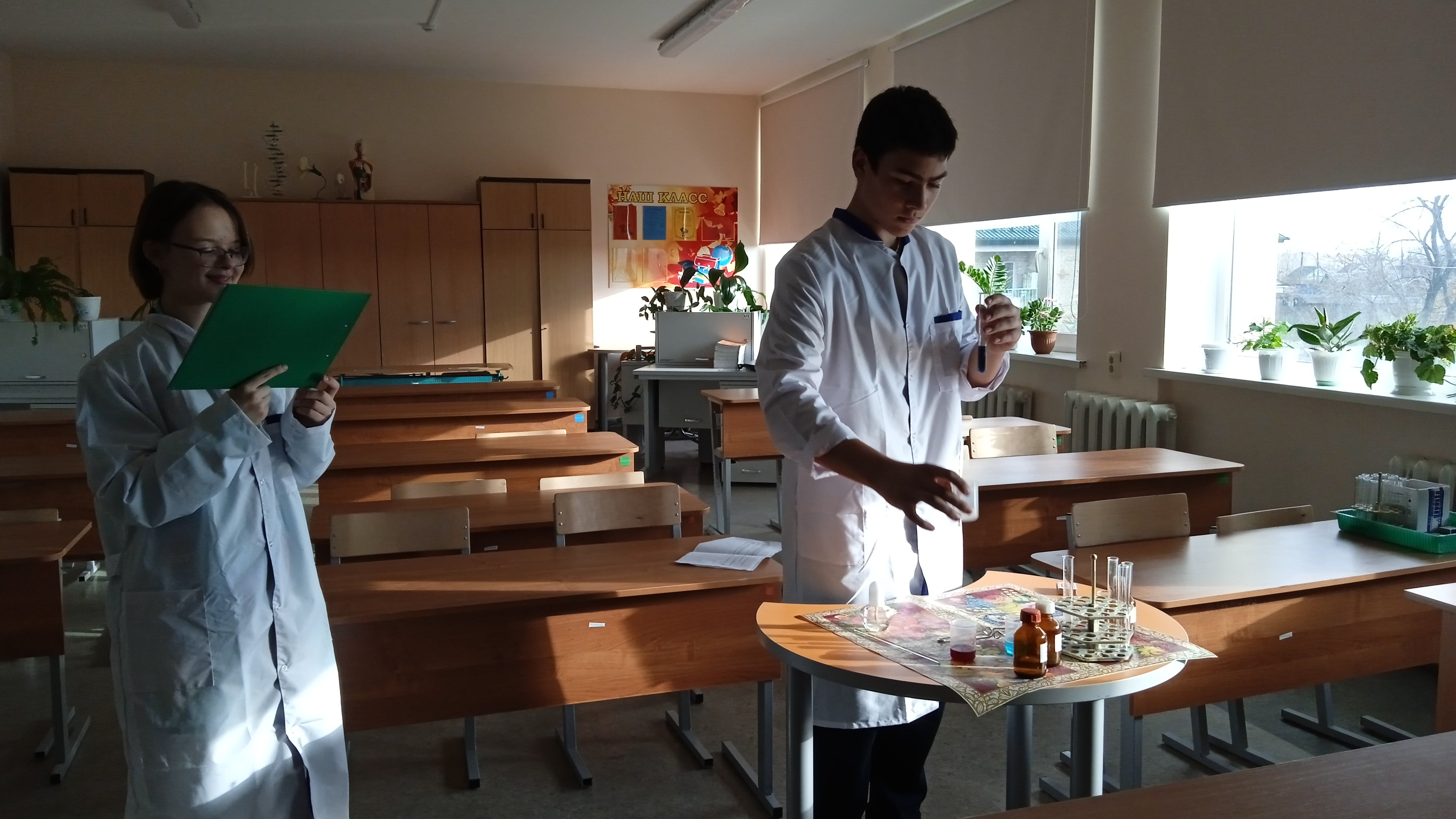 В пятницу, 14 октября, в школах Заводоуковского ГО прошел очередной телемост для школ, реализующих проект "Науколаб". 7 образовательных учреждений ГО показали интересные опыты по теме "Химические опыты для начинающих: Плоды и фрукты". Нашу школу представляли ребята из 8 класса. Они доказали при помощи химических опытов, что в соке малины и в сахаре содержится глюкоза.