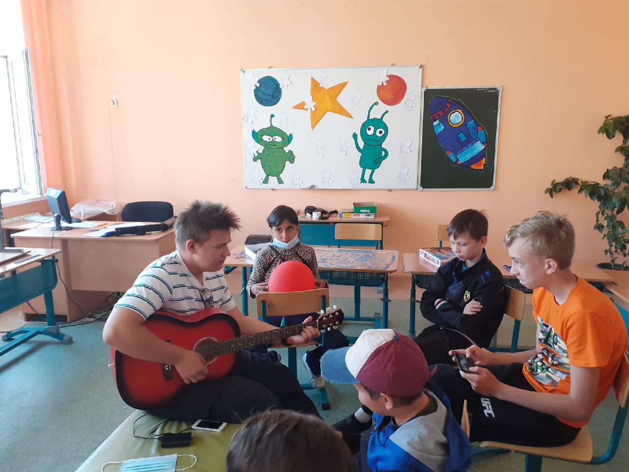 Космическое путешествие в отряде "Созвездие" проходит весело и интересно. Ребята учат новые песни, создают стенгазеты. Во время спортивного часа, дети научились вязать морские узлы.