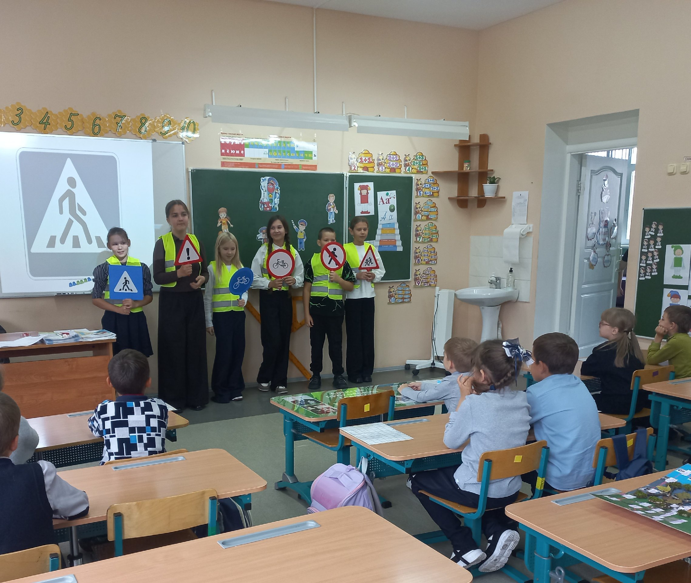 Учащиеся 5 класса подготовили замечательные стихотворения о дорожных знаках. Они напомнили первоклассникам о важности соблюдения правил и внимательности.