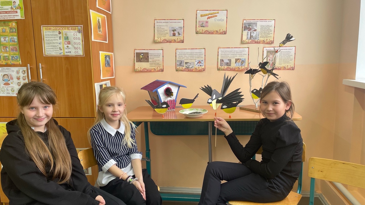 Так ребята начальных классов оформили выставку, посвященную синичкам.