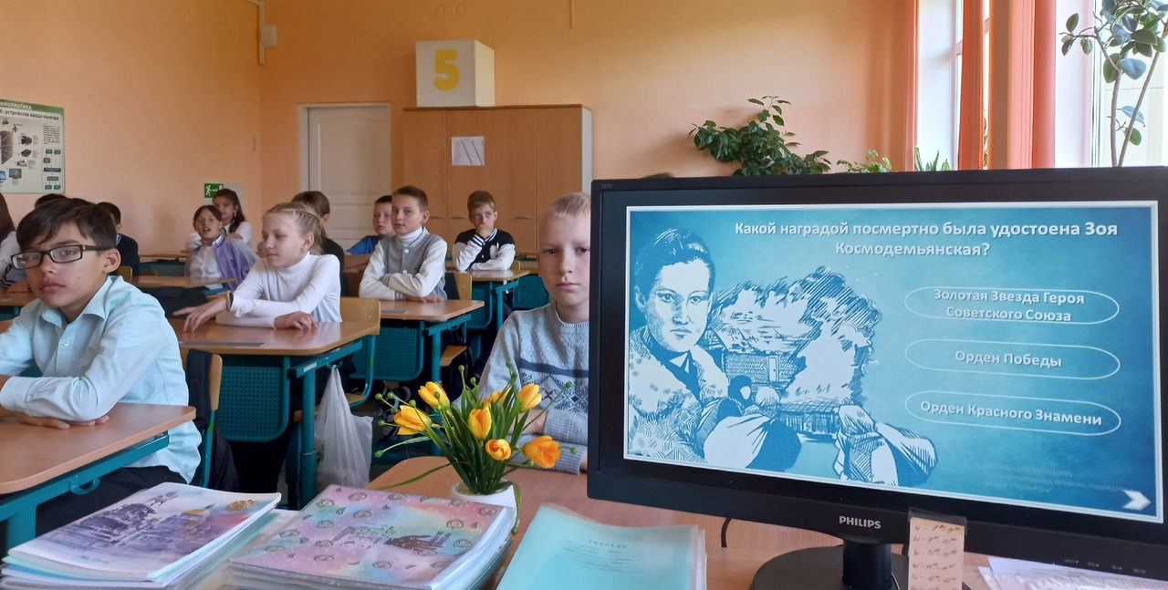В конце занятия ученики сделали вывод, что мы, как благодарные потомки тех, кто сберег нашу Родину, тех, кто отдавал все, даже свои жизни, для великой Победы, должны не только бережно сохранять и передавать потомкам память о героизме истинных патриотов таких, как Зоя Космодемьянская, но и быть достойными их подвигов.