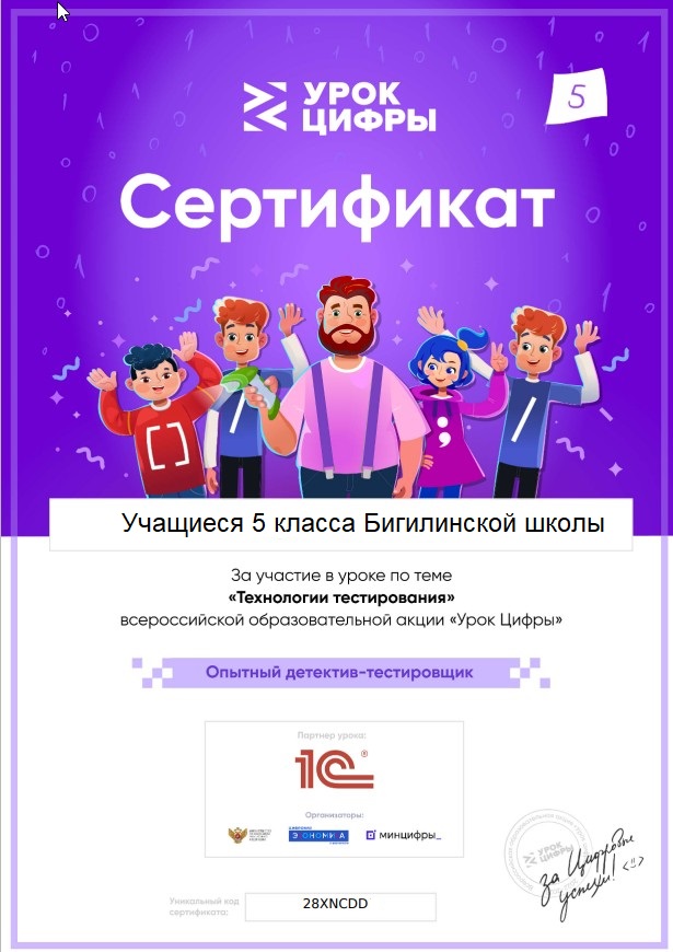 В марте 2024 года учащиеся нашей школы приняли участие во всероссийском образовательном проекте «Урок цифры» по теме «Технологии тестирования».